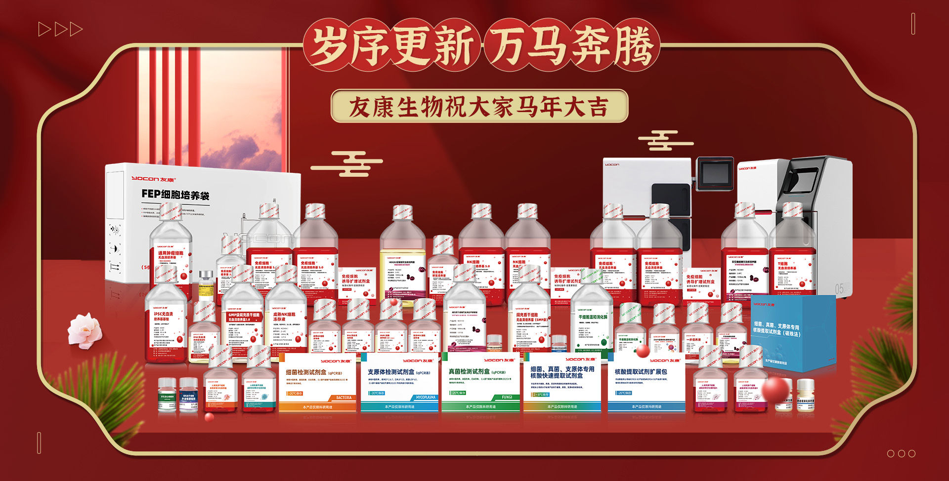 友康生物成立于2006 年 , 是国内领先的无血清细胞培养与分子诊断产品研发供应商,是首家获美国FDA注册受理的中国无血清细胞培养基企业,也是国内首家获二类医疗器械注册证的分子检测耗材供应商。已获专利48项;二类医疗器械注册证1项、三类医疗器械注册证3项;美国FDA DMF 6项,其中被药企注册关联4项。在申三类医疗器械注册证5项;美国FDA 510k注册证1项。通过了ISO9001及ISO13485质量体系认证。 友康生物在多年的经营长跑中脱颖而出的根本原因是“做创新的产品”,紧密满足用户需求,推出更多优秀产品,助力用户走得更远。